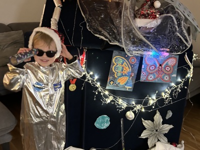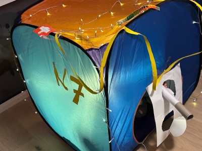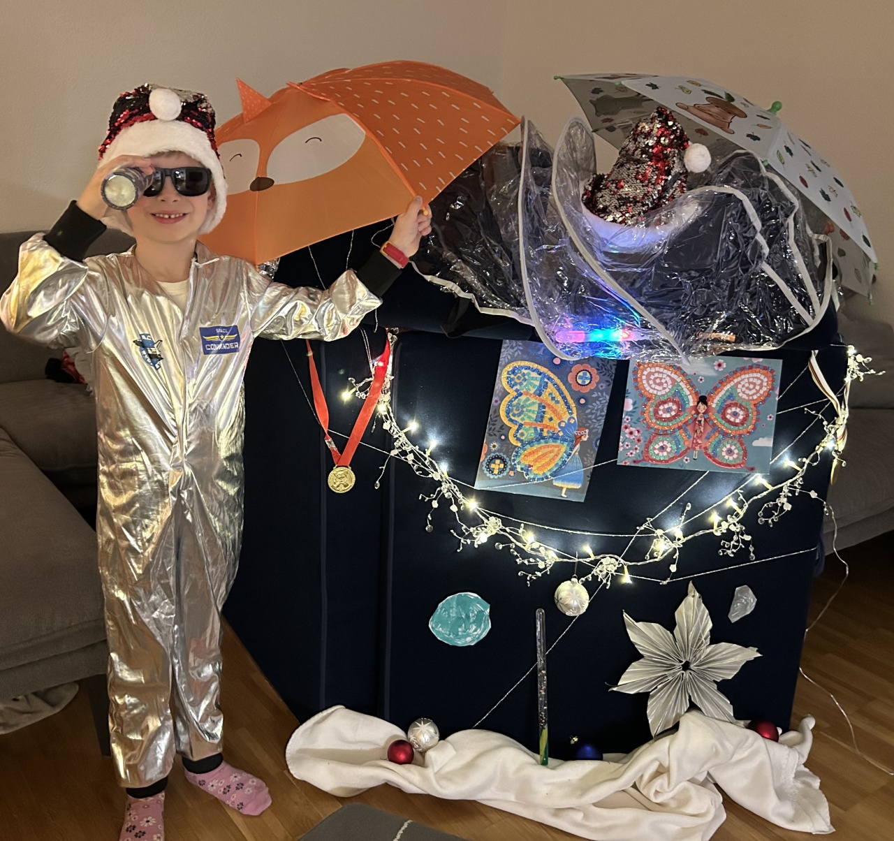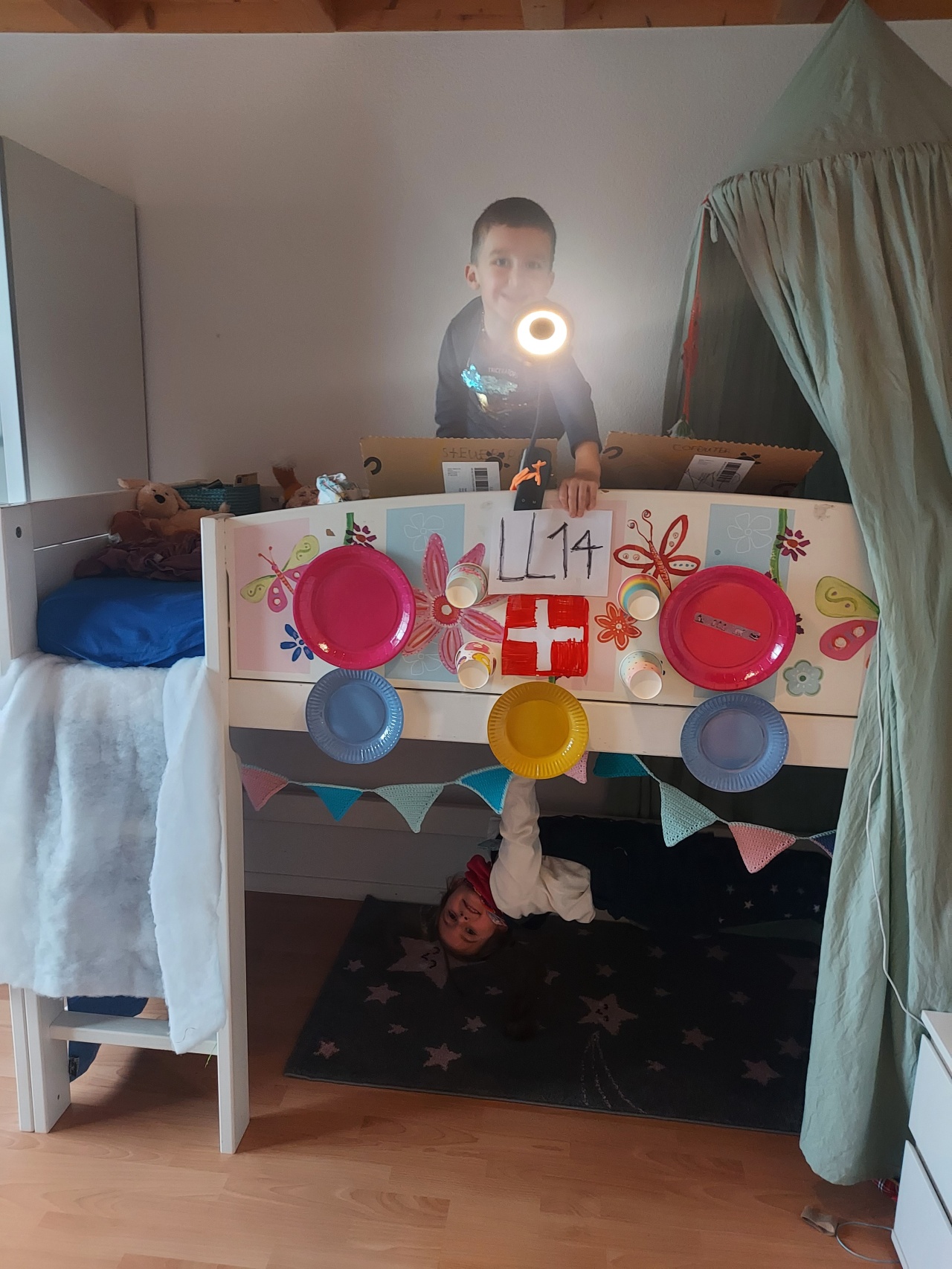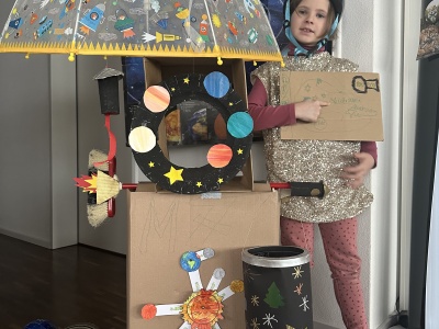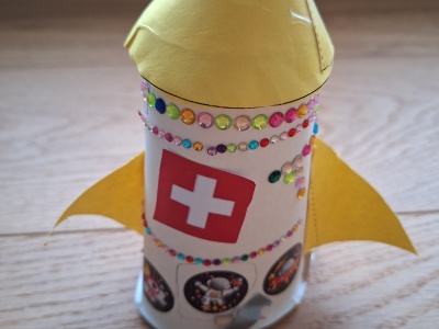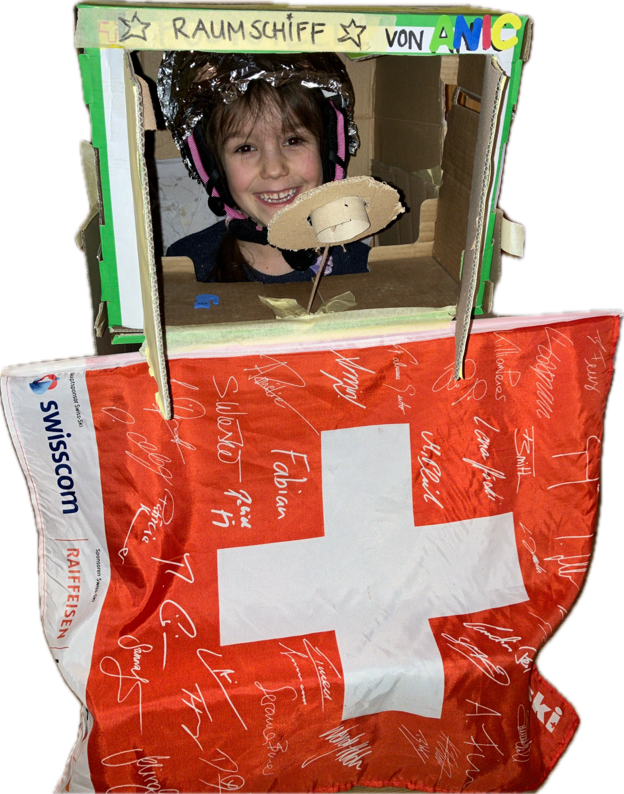 Im Zuge des diesjährigen Adventskalenders hat Andrew im 12. Video bzw. im 12. Törli dazu aufgerufen, ein Foto deines selbstgebastelten Raumschiffs per Email zu senden. Aus allen Einsendungen verlosen wir 2 Familientickets für je 4 Personen für ein Schternefeischter-Konzert im Planetarium des Verkehrshauses Luzern sowie 20 Kleberbögen mit Motiven aus «Bastlonaut Basil».